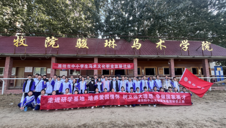 潍坊四中53名初一员工参观了学校的骏琳马术学院,了解了我国马术历史、马文化,学习马的生活习性、马匹养护及骑马入门等相关知识,并进行了骑乘体验。